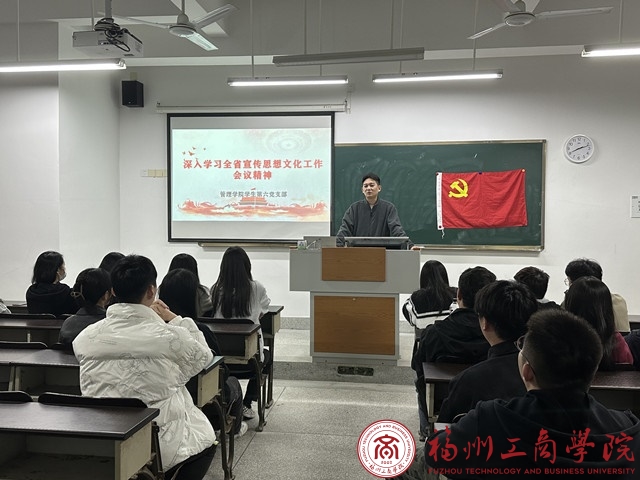 根据主题教育理论学习计划安排,12月6日,申博sunbet员工第六党支部在教学楼D406集中学习全省宣传思想文化工作会议精神,此次会议由支部书记主持,支部全体党员参加会议。