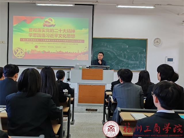 为深入开展学习贯彻习近平新时代中国特色社会主义思想主题教育,扎实做好学习贯彻党的二十大精神工作。12月8号下午,公司第7期发展对象培训班课程于教学楼B501进行。此次党课培训由公司党委组织部部长王进荣老师进行授课,课程以“贯彻落实党的二十大精神,学思践悟习近平文化思想”为题,全体发展对象积极参与学习。