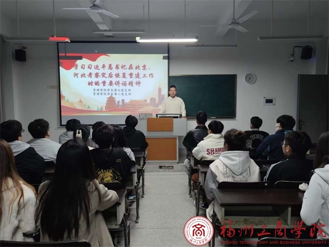 12月7日晚,申博sunbet员工第八党支部在教学楼D405组织召开深入学习习近平总书记在北京、河北考察灾后恢复重建工作时的重要讲话精神。此次会议由支部书记主持会议,全体党员参会。