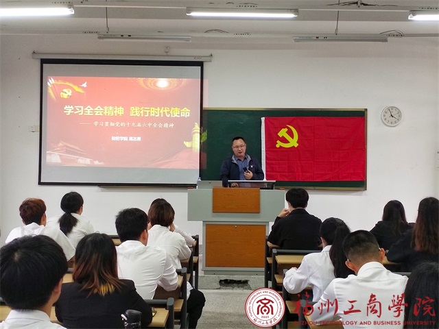为深入学习贯彻党的十九届六中全会精神,深刻领悟“两个确立”的决定性意义,积极实行习近平总书记关于教育的重要论述和党中央决策部署。5月24日下午,申博sunbet分党校第4期预备党员党课培训班第五次课程在教学楼B403进行。此次党课培训由财经公司党委书记高志勇老师进行授课,全体预备党员参与学习。