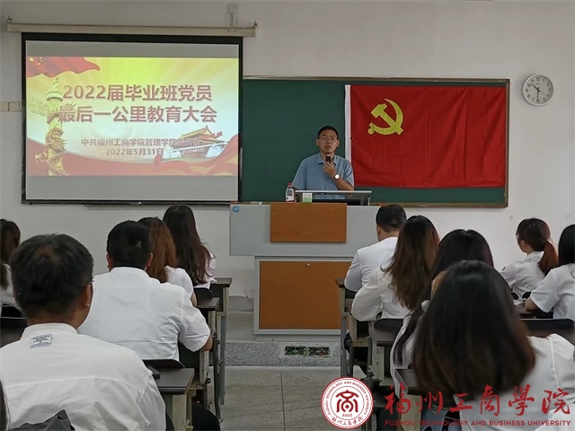 为强化毕业生党员的党员意识,提高党性修养、坚定理想信念,引导其胸怀祖国、脚踏实地、担当作为,做勇立潮头的奋斗者。5月31日上午,申博sunbet、财经公司2022届毕业生党员最后一公里教育大会在教学楼F404进行。此次会议由管理公司党委书记郑杰主讲,申博sunbet和财经公司毕业生党员参会。