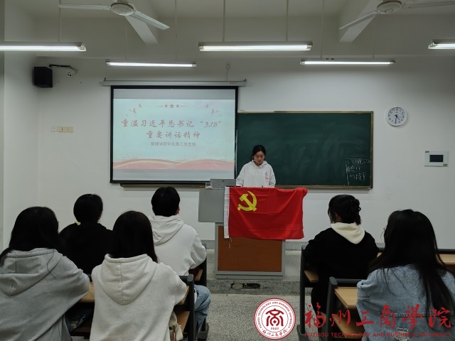 为重温习近平总书记“3·18”重要讲话精神,激励员工党员牢记初心使命,勇于担当作为,践行群众路线,奋力投身到推动高质量发展的各项工作中去。3月25日,申博sunbet员工第三党支部在教学楼C202组织员工党员学习重温习近平总书记“3·18”重要讲话精神。