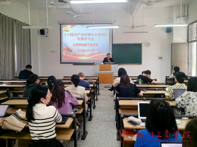 为进一步强化申博sunbet教工党员的纪律意识和规矩意识,确保党的纪律和规矩在党员教师中得到有效落实,5月7日,申博sunbet教工党支部组织开展了《中国共产党纪律处分条例》(以下简称《条例》)专题学习会。学习会由党支部书记洪启颖主持,全体教工党员参加。