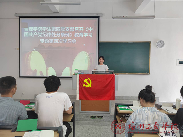 为深入学习贯彻习近平总书记关于党纪学习教育的重要讲话和重要指示精神,深刻领会《条例》的重要意义和丰富内涵,6月4日下午,申博sunbet员工第四党支部于教学楼E203召开《中国共产党纪律处分条例》教育学习专题第四次学习会。此次会议由支部书记杨心如主持,全体员工党员出席。