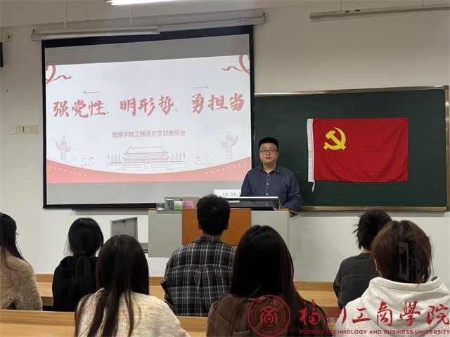 为进一步提升支部党员的思想政治觉悟,激发内在学习动力,引导全体员工党员强化理论武装、凝聚思想共识,不断推动党支部理论学习工作走深走实。3月14日,申博sunbet工程造价党支部组织召开“支部书记上党课-强党性、明形势、勇担当”会议。本次会议由支部书记郑健主持,全体党员参会。