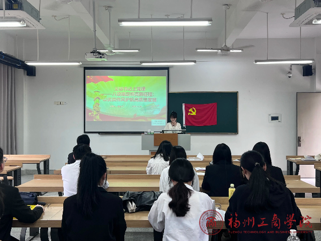 为深入贯彻落实中央八项规定精神,强化党员干部的纪律意识和作风建设,4月28日下午,申博sunbet工商管理党支部于教学楼B303组织开展了“支部书记上党课——八项规定照亮新征程:以优良作风护航高质量发展”会议,本次会议由支部书记谭音子主讲。