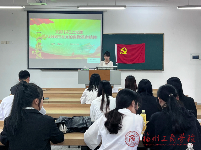 为深化党员对党的自我革命精神的认识,5月28日,申博sunbet工商管理党支部于教学楼B303组织开展了“支部书记上党课——从八项规定看党的自我革命精神”会议,本次会议由支部书记谭音子主讲。