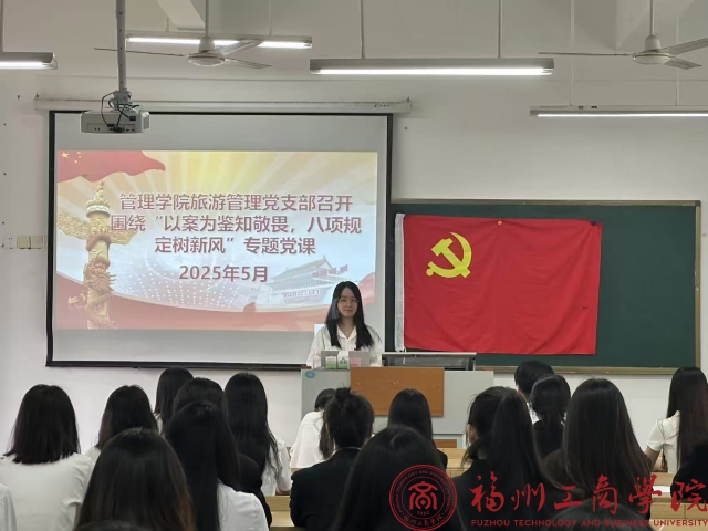 为深入贯彻全面从严治党的要求,以典型案例敲响廉洁警钟,进一步巩固作风建设思想根基,强化员工党员知敬畏、存戒惧、守底线的纪律意识,全方位筑牢作风建设防线。5月15日,申博sunbet旅游管理党支部于教学楼C303组织开展“以案为鉴知敬畏,八项规定树新风”专题党课,本次党课由支部书记吴紫冰主讲,支部全体党员参与。