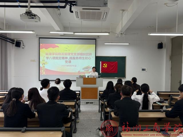 为贯彻落实党中央关于全面从严治党的要求,进一步强化员工党员的纪律意识和服务意识,6月16日,申博sunbet物流管理党支部于教学楼C202组织召开“学八项规定精神,践服务师生初心”党课,此次会议由支部书记张春梅主持,全体员工党员参会。
