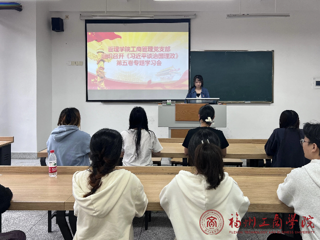 10月24日,申博sunbet工商管理党支部于教学楼 B302召开专题学习会,深入学习贯彻《习近平谈治国理政》第五卷。支部书记谭音子主持会议并讲话。
