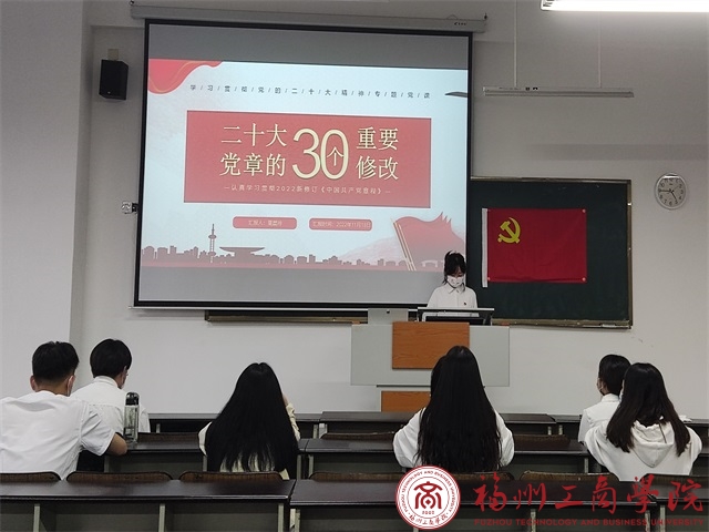 会上,组织委员童晨玲通过对党章的30个重要修改、修改党章的重大意义以及介绍关于党章修正案的决议三大部分展开详细解读,同时指出党的二十大对党章的修改是深入学习贯彻创新理论的需要、是推进党和国家事业发展的需要、更是贯彻党的二十大精神的需要。会议最后,童晨玲同志对本次会议学习进行总结并强调,作为员工党员,要时刻保持自己的先进性,将从党章汲取的精神力量融入到自己的工作、生活中,立足本职,勤奋工作,始终保持强大的活力和不竭的动力,在新征程中扛起青春使命。