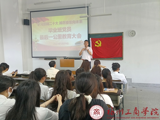 5月29日下午,管理公司党委于教学楼F202开展2023届毕业班党员“最后一公里”教育大会。此次会议由管理公司党委组织委员主讲,申博sunbet毕业生党员参会。