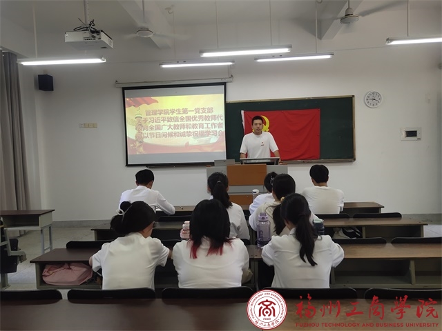 会议组织观看了第39个教师节全国优秀教师代表座谈会视频,并全文领学了习近平总书记致信全国优秀教师代表座谈会内容。支部书记指出:要大力弘扬教育家精神,牢记为党育人,为国育才的初心使命,树立“躬耕教坛,强国有我”的志向和抱负,自信自强、踔厉奋发,为强国建设、民族复兴伟业作出新的更大贡献,为强国建设、民族复兴伟业培养更多德才兼备的栋梁之才。