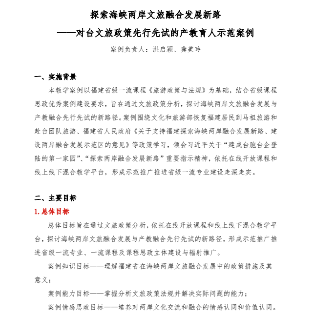 ——对台文旅政策先行先试的产教育人示范案例
