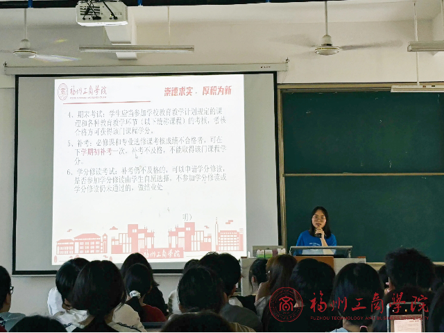 其次,老师提出了课程修读、学业预警与留级、学籍异动的管理事项,让新生们清楚的了解了公司对于考试的重视以及作弊绝对不能做的事。老师热情激烈的讲述,新生们热情高涨,积极回应,展现出了新青年的积极向上的精神风貌。