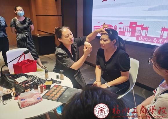 沙龙会议开始前,王柳云副经理介绍了化妆造型设计师董绘的职业经历与殊荣。本次沙龙会议主要是为女教师们讲解职业妆容的化妆技巧及要点。化妆造型设计师董绘还现场邀请一位女教师,开展职业妆容的示范教学。
