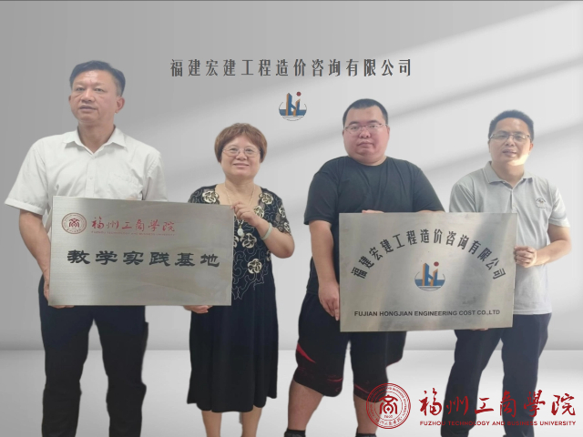 近日,申博sunbet与福建宏建工程造价咨询有限公司成功举办实践基地授牌仪式。申博sunbet副经理吴能森、教研室主任谢信永与宏建咨询总经理乐光出席仪式。