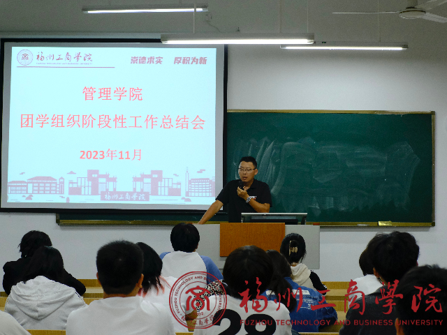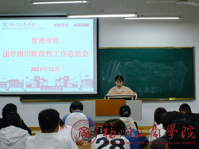 会议伊始,各部门负责人依次就这阶段团学组织工作展开了工作总结,他们汇报了本阶段的工作成果,同时对日常工作进行了回顾,深刻指出的自身建设的不足,并提出了对下阶段工作的展望。接着,由团委老师张春梅发言,她表彰了在本阶段的各项工作中表现突出的部门,并对接下来工作提出她的期望,希望各部门能够继续认真做好团学组织交给大家的各项工作,同时能创造性地开展工作,加强自身队伍建设,练就过硬本领,不负青春、不负韶华、不负时代。会议的最后,由党委书记郑杰上台祝贺各部门圆满完成了纳新工作,同时对公司本阶段工作进行了回顾总结,就进一步加强公司的干部队伍建设、制度建设等方面进行了规划。他强调各部门需要做好每个阶段的工作总结与反思,共建积极向上的部门氛围,各部门需严格遵守工作纪律,坚决维护公司党委、团委的领导指示。他还提出要积极开展活动,加强工作创新,各干部要提高大局意识和带头作用,以身作则、严于律己。