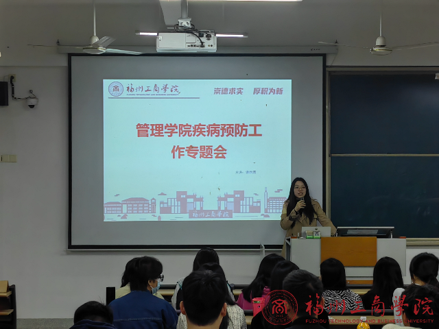班会伊始,辅导员以知识分享与具体事例相结合的方式向同学们介绍有关于流感预防的小知识,并通过知识问答形式让2022级工商管理专升本全体同学对传染病种类,发病症状等内容有更加清楚明确的认识。同时,辅导员分别从病因、传播途径、症状,处理方法等方面入手,向同学们介绍了疾病预防的正确措施。在科普相关知识过后,再由同学介绍典例与防治预防措施,让同学们重视自身健康问题。