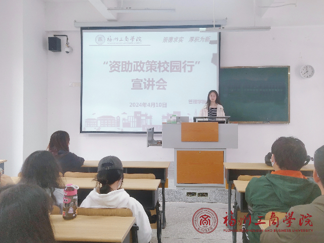 为更好的帮助同学们更好地了解和利用资助资源,为未来的学业和生活提供有力支持。4月10日下午,2023级物流管理专升本专业召开“沐光而行,向阳而生”资助宣讲会。本次宣讲会由黄智博同学主持,辅导员老师出席,专业全体同学参加。