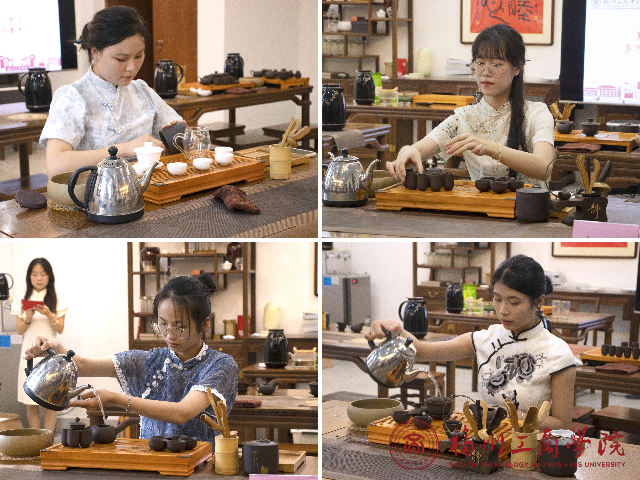 随着悠扬的古筝旋律荡漾开来,比赛拉开序幕。选手们以沉稳之姿,行云流水般展开了他们的茶艺展示:温杯洁具、精准投茶、水流如丝、敬献香茗,每一步都透露出他们对茶艺的深刻理解与娴熟技巧。在这场视觉与味觉的双重盛宴中,选手们将茶道的精髓演绎得酣畅淋漓。在经过紧张激烈的角逐之后,评委老师们评选出一等奖一名,二等奖两名、三等奖三名及优秀奖五名。