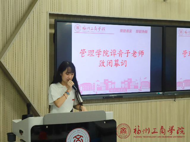 大会第六项,申博sunbet辅导员谭音子老师致闭幕词。其提出三点希望:一是接好前行的接力棒,虚心学习、积累经验;二是传递积极的正能量,主动担责、做出表率;三是凝聚集体的创造力,勇于创新、乐于奉献。最后,谭音子老师祝贺第二届全体团学组织干部未来可期。