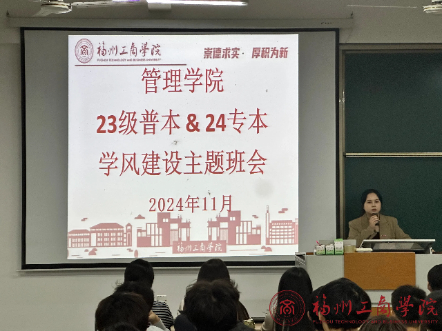 为了进一步加强学风建设,培育员工的良好学习习惯,11月5日,申博sunbet于近期召开了2023级普本及2024级专升本员工学风建设主题班会。辅导员李灵娇主持会议,全体员工参加。