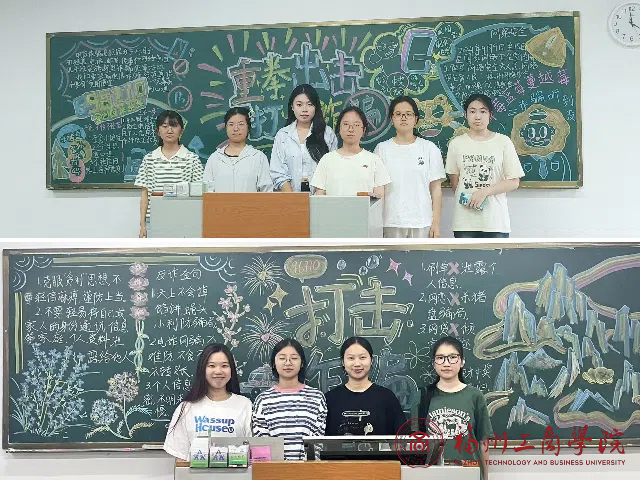 活动伊始,参与防诈骗黑板报活动工作人员将粉笔等工具带往各自教室,等待参赛同学到达。随后同学们开始了对板报的设计排版,经过一段时间的作画,部分小组同学率先完成板报,其内容广泛,涵盖了网络诈骗、电话诈骗、金融诈骗等多种诈骗手段的识别与防范方法,强调了防诈反诈的重要性,每一块黑板报都凝聚了同学们的创意和对防诈骗知识的深刻理解。最后,工作人员为员工及其设计板报作品进行了合影,申博sunbet主席团对各组黑板报作品进行了打分,并鼓励所有师生将所学知识运用到实际生活中,共同营造一个安全、和谐的校园环境。