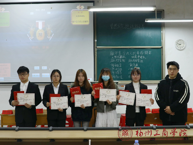 本次辩论赛的正方是来自2024级工商管理1班的四位辩手,他们的论点是“躺平是当代人的毒药”。反方是2024级旅游管理1班的四位辩手,他们的论点是“躺平是当代人的解药”。比赛伊始,正方一辩以清晰的逻辑和有力的论据阐明观点,迅速将全场气氛点燃。反方一辩也不甘示弱,反驳掷地有声,精准地指出对方漏洞。攻辩环节,双方辩手针锋相对,提问犀利,回答巧妙,你来我往间尽显思维敏捷度。自由辩论阶段更是高潮迭起,辩手们或引经据典,或结合实际案例,互不相让,将比赛气氛推向白热化。总结陈词时,正反方四辩都以出色的口才梳理全场脉络,升华己方观点,给观众留下深刻印象。经过激烈的辩论,2024级工商管理1班获得冠军,2024级旅游管理1班获得亚军。