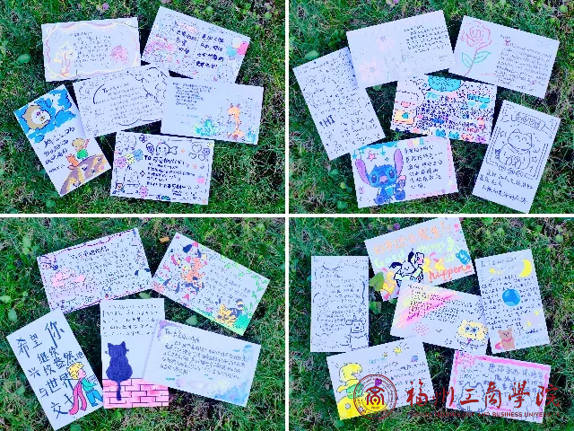 从前慢,书信暖,一张小小的明信片承载着同学们对留守儿童满满的关心。活动开始后,同学们陆陆续续地来到活动的站点,在活动工作人员的指导下,领取定制明信片,在卡片上留下一幅幅色彩斑斓的涂鸦,或是几句简单却温暖的话语,分享感受到的更广阔的风景,更灿烂的生活的同时,每一笔,每一划,都凝聚着对孩子们的真诚祝愿和美好期望。
