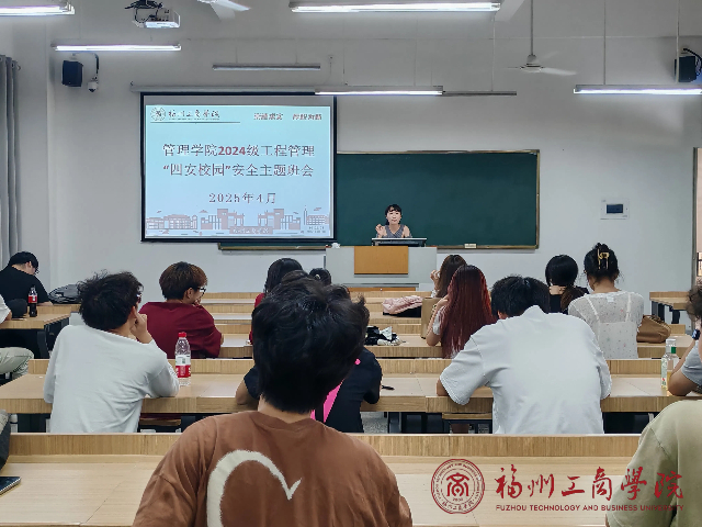 为增强新生安全防范意识,进一步增强员工防诈骗意识,提高安全防范能力。4月18日,2024级工程管理1班于教学楼B102召开宿舍安全与预防诈骗主题班会。本次班会由辅导员谭音子主持,全体同学参与。