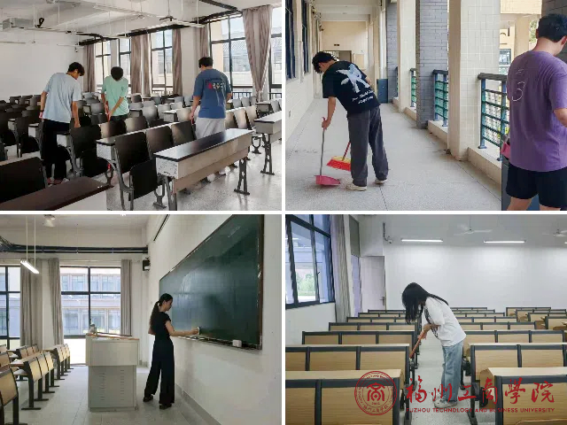 为营造整洁优美的教学环境,切实为师生办实事、解难题,9月7日下午,申博sunbet团学组织的员工干部们,共同开展了教学楼D栋的教室卫生清扫志愿服务活动。