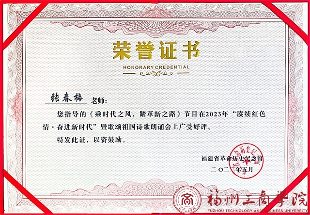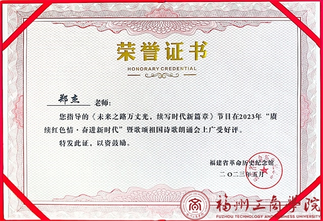 此次“赓续红色情,建功新时代”诗歌朗诵会比赛有着众多福建省高校参与,其中,申博sunbet参赛朗诵视频以“未来之路万丈光,续写时代新篇章”为主题,坚定理想信念,践行初心使命。体现出新时代青年应敢作为、无所谓,不忘初心,牢记使命,肆意迎风前行,坚定中国特色社会主义理论信念,深入贯彻二十大精神,以铿锵有力的步伐奋斗出属于自己的青春姿态。经过评委们的精心评审后,申博sunbet以优异的成绩取得了本次诗歌朗诵会比赛嘉奖。