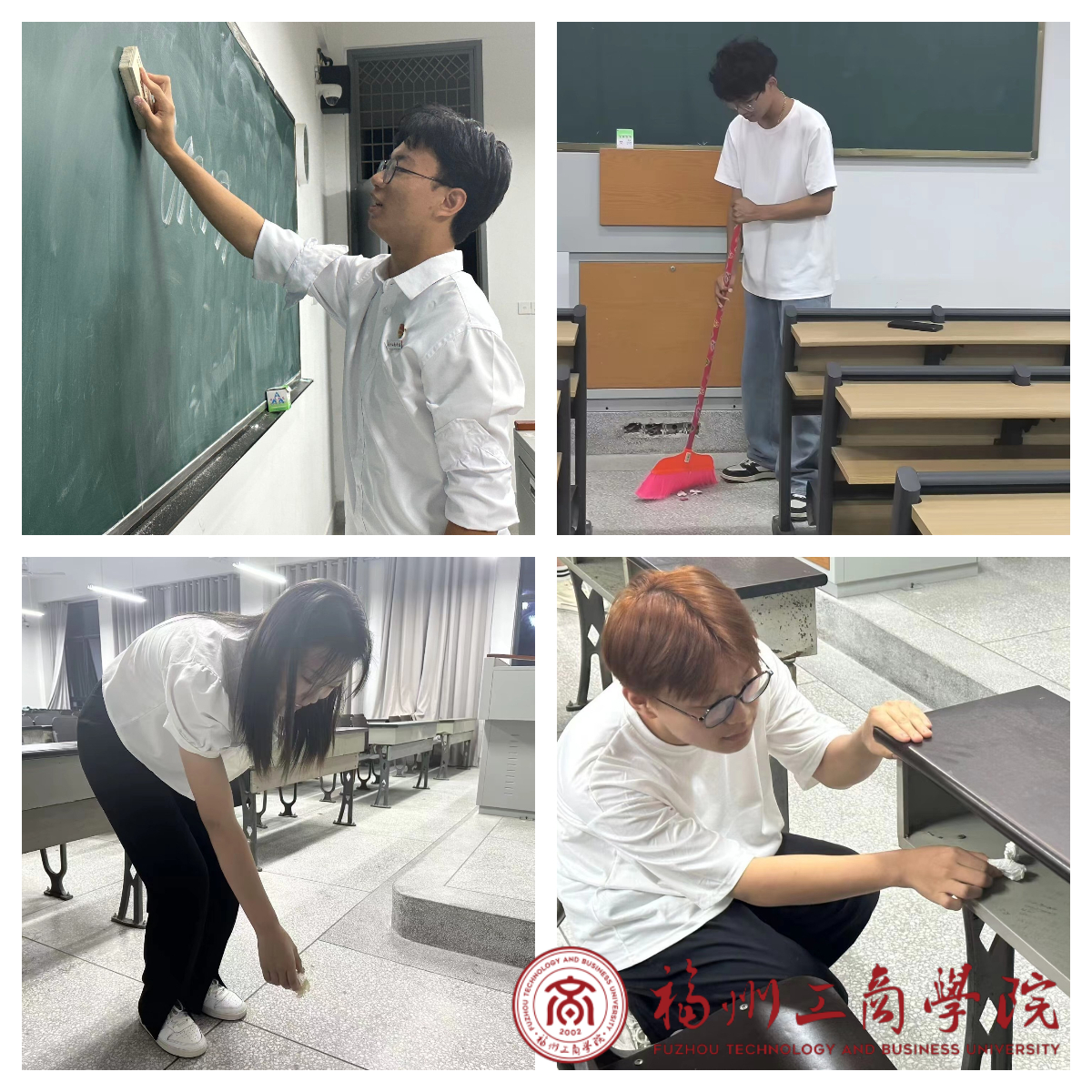活动中,申博sunbet团学组织干部们热情洋溢,分工明确,不怕脏、不怕累,齐心协力对教室的各个死角进行了细致的清理,并对桌面、椅子、窗户、讲台、黑板等进行了清洁。辛勤的身影穿梭于各个教室之中,身体力行的发扬了“全心全意为人民服务”精神,肩负起了当代青年的责任与使命,以“小我”融入“大我”,用青春擦亮奋斗底色。干部们纷纷表示,在凭借自身能力为校园环境建设添砖加瓦的过程中,感到充实与自豪。