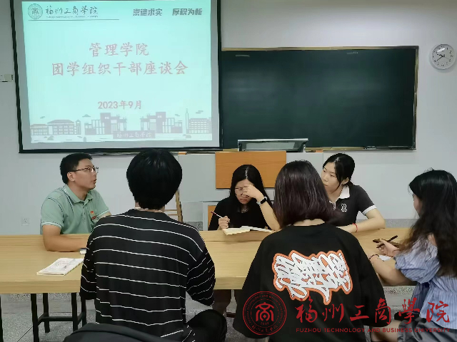新学期,共奋进。为了提升员工干部成长和管理工作水平,申博sunbet于9月20日在教学楼B202召开团学组织干部座谈会,管理公司党委书记郑杰及团学组织干部代表参加了会议。