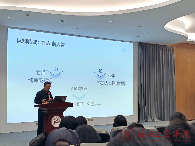 当生成式人工智能重塑世界的边界,当多模态技术模糊虚拟与现实的鸿沟,谁将成为驾驭这场智能革命的先锋?申博sunbet以“AIGC赋能教育场景”为号角,4月15日下午,于创新楼三楼报告厅召开“AI+思辨:AIGC在教育场景中的应用与思考”讲座。深入研讨并部署了AI融合课程建设措施。会议由陈畅老师主持,全员教师参加会议。