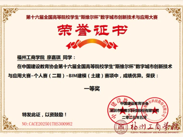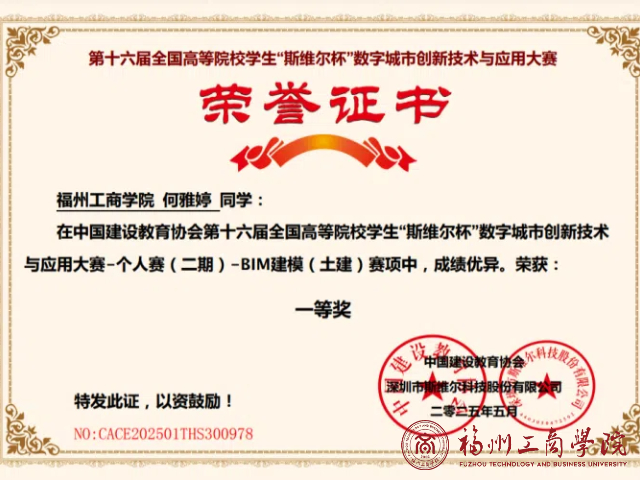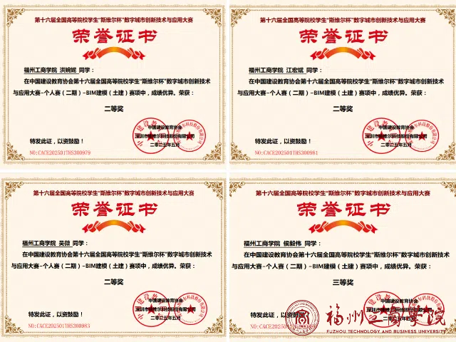 近日,申博sunbet工程管理专业与工程造价专业员工在第十六届全国高等院校员工“斯维尔杯”数字城市创新技术与应用大赛第二期个人赛传来喜讯,取得了两项一等奖、三项二等奖和一项三等奖的佳绩。