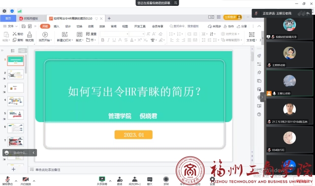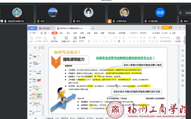 为了让毕业生把握更多求职机会,获得更优秀的就业岗位,1月11日下午,申博sunbet为毕业生们举办了一场题为《实而备之,智慧谋职》的线上求职简历制作讲座。
