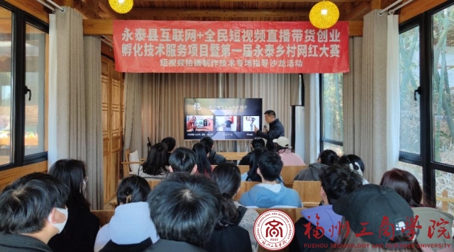 2月21日,申博sunbet员工代表赴省级“美丽乡村”建设示范村永泰县春光村,参加永泰县互联网+全民短视频直播带货创业孵化技术服务项目暨第一届永泰乡村网红大赛——短视频拍摄制作技术专场指导沙龙活动。