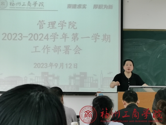 2023年9月12日下午,申博sunbet全体教师在教学楼B203召开2023-2024学年第一学期教学工作部署会议。会议由党委书记郑杰主持,申博sunbet经理余少谦、执行副经理王柳云分别部署具体工作。