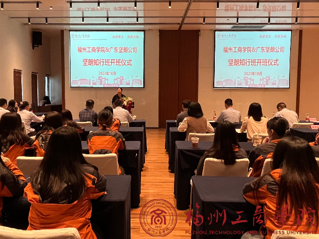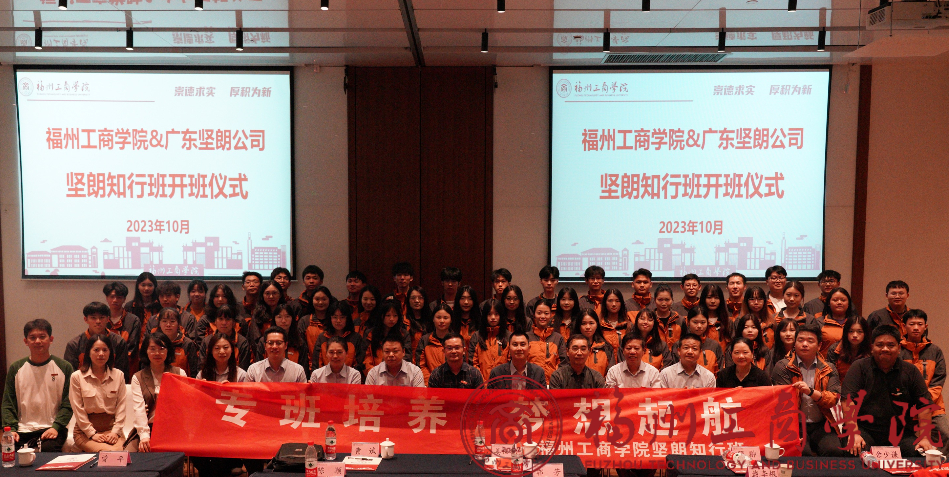 10月20日下午两点,公司企合作订单班(坚朗知行班)第一期开班仪式在方广书院隆重举行。广东坚朗五金制品股份有限公司(以下简称坚朗公司)大福建销售区总经理姜世举、人力资源中心副总监顾翀等企业代表、申博sunbet黄斌副董事长、教务处高文伟处长,二级公司经理、订单班班主任及教师代表和订单班全体同学出席了此次活动,会议由申博sunbet常务副经理王柳云主持。